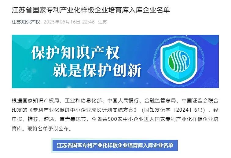 江蘇省知識產(chǎn)權局公布