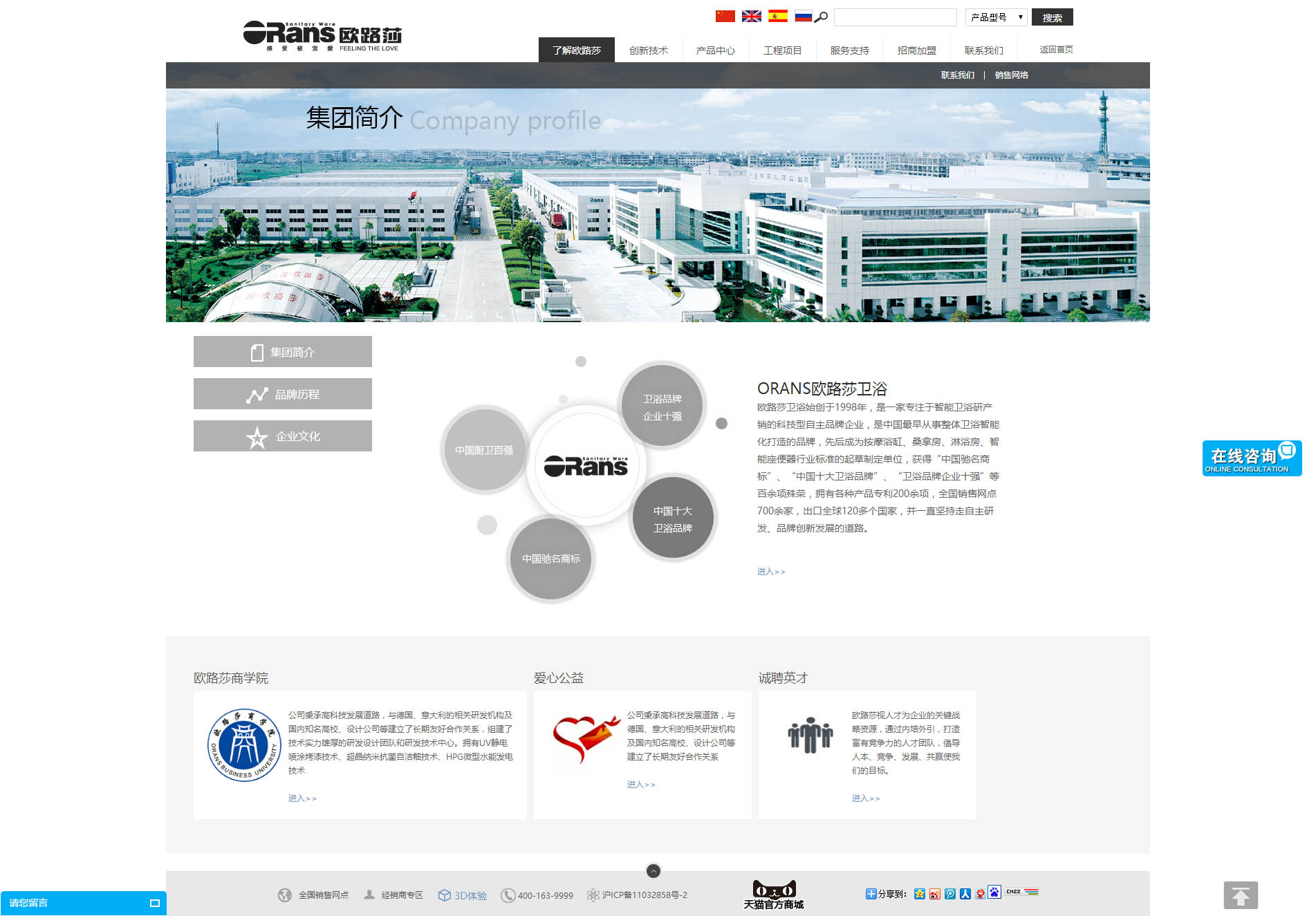 歐路莎衛(wèi)浴始創(chuàng)于1998年,是一家專注于智能衛(wèi)浴研產(chǎn)銷的科技型自主品牌企業(yè),是中國最早從事整體衛(wèi)浴智能化打造的品牌,先后成為按摩浴缸、桑拿房、淋浴房、智能座便器行業(yè)標準的起草制定單位,獲得“中國馳名商標”、“中國十大衛(wèi)浴品牌”、“衛(wèi)浴品牌企業(yè)十強”等百余項殊榮,擁有各種產(chǎn)品專利200余項,全國銷售網(wǎng)點700余家,出口全球120多個國家,并一直堅持走自主研發(fā)、品牌創(chuàng)新發(fā)展的道路。