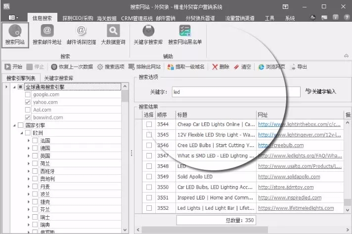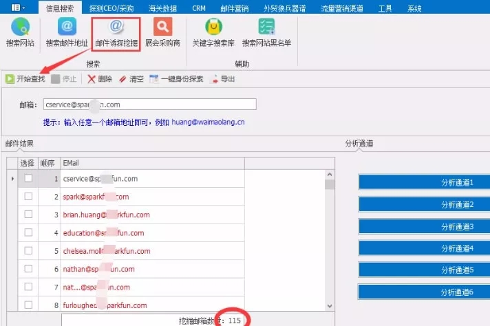 外貿(mào)狼已經(jīng)將目標客戶的網(wǎng)站和網(wǎng)站上的郵箱快速地呈現(xiàn)給你了,但是外貿(mào)狼絕不滿足于此,因為我們深知這些網(wǎng)站上的info、sales類的郵箱,很多都不是客戶的決策者的,我們知道這些郵箱,不僅我們能夠找到,別的軟件也能找到,價值不大。我們外貿(mào)狼的郵件誘探挖掘可以通過這些表面的郵箱,利用我們外貿(mào)狼獨有5大通道,快速挖掘到和這個郵箱相關聯(lián)的公司其他人的郵箱,老板和采購的郵箱統(tǒng)統(tǒng)拿到碗里來。