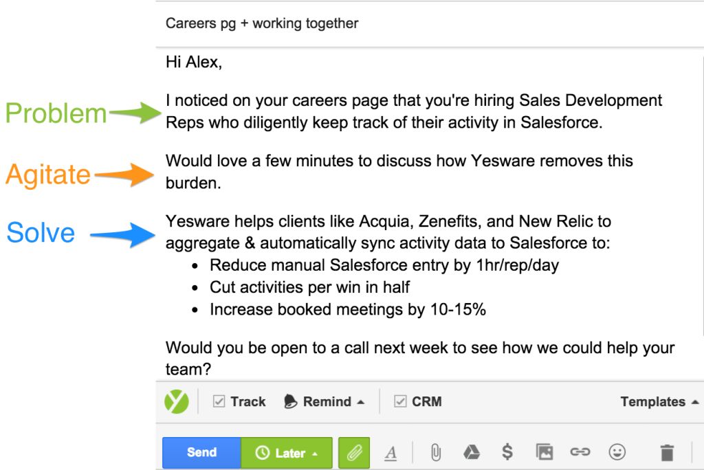 以下是我們總結(jié)的八種最佳模版。包括來自Yesware銷售達(dá)人和其他人的真實(shí)示例。